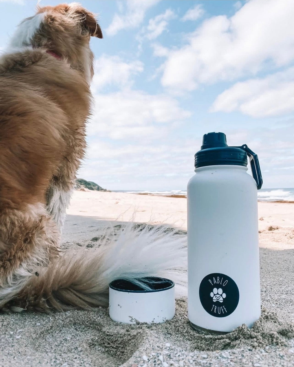 I love this bottle! Double-walled steel keeps my water ice-cold, and my dog drinks comfortably from the detachable base perfect for long hikes and outdoor fun.
